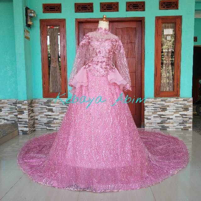 Baju akad nikah pink roses muslimah wedding dress · baju nikah putih offwhite manik soft pink pearl dgn biru · model kebaya pengantin warna pink . Longdress pesta big size brokat peach merah pink . Gaun pengantin pink wedding gown wedding dress 2016 06002.
